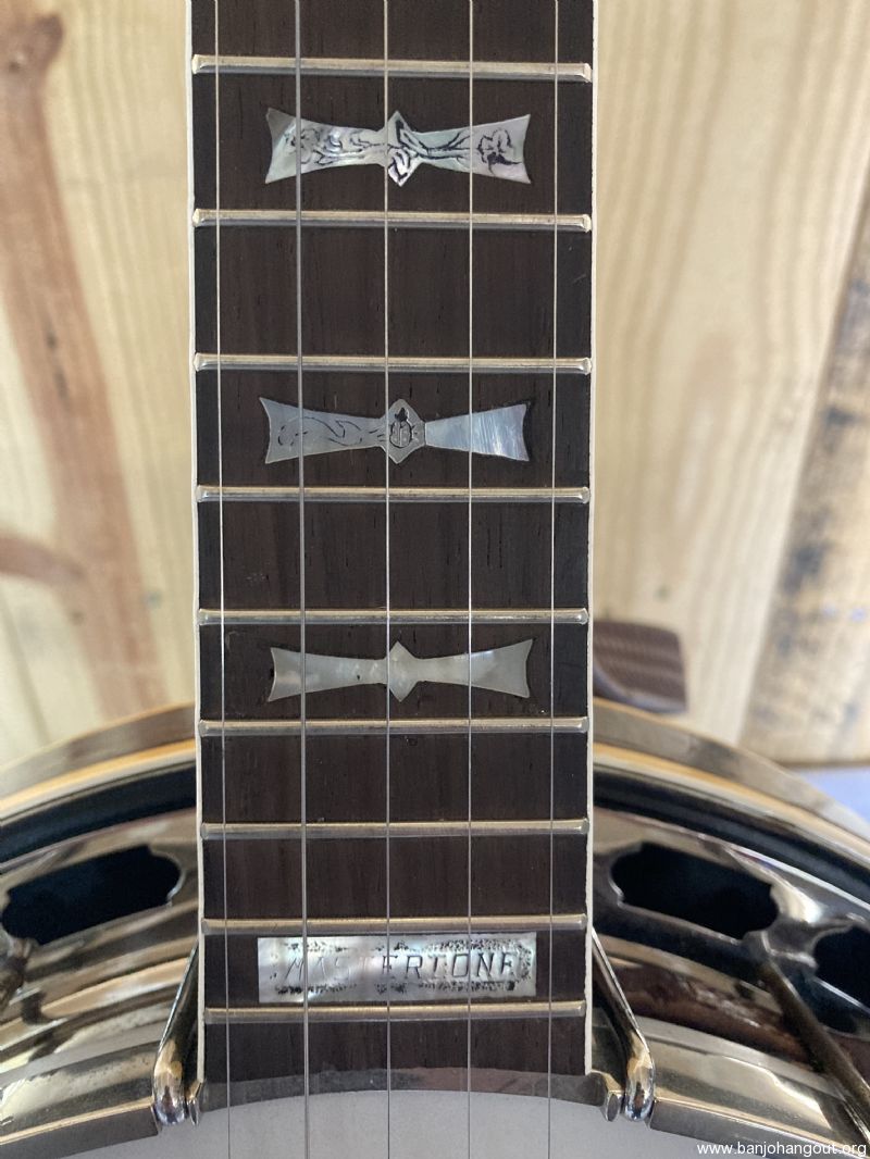 The Neck Was Replaced At Some Point With A 1967 (057673) Neck With Some Intersting Etching In The Bowtie Inlays. 5th String Spikes @ The 7th, 9th, & 10th Frets. Banjo Was Set Up By Richie Dotson In Late 2023 ( I Have The Receipt) And Has Been Played Very Little, Frets Are Excelent.