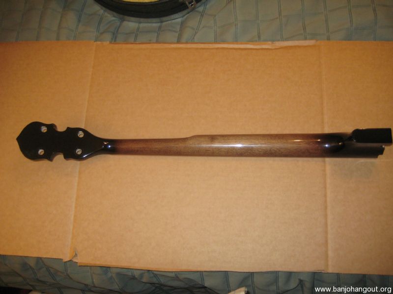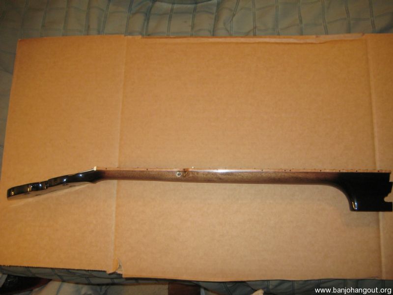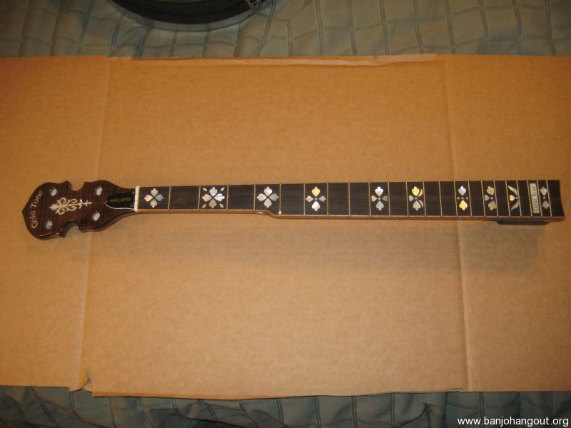 This is a really nice Gold Tone 5-string banjo neck. Heel is a "one piece flange". It is in "near new" condition. A good value at an affordable price. $275.00 plus shipping