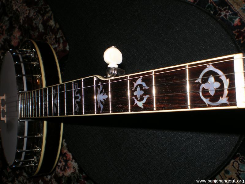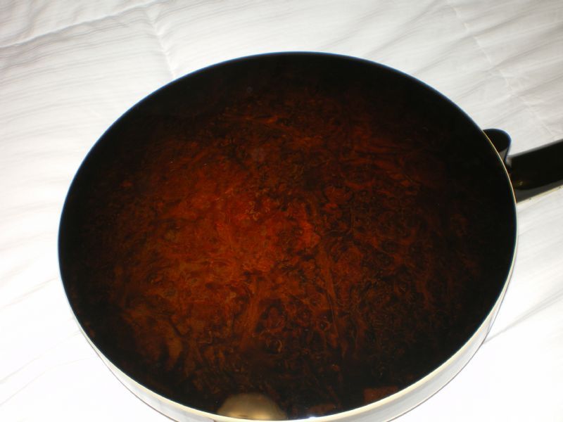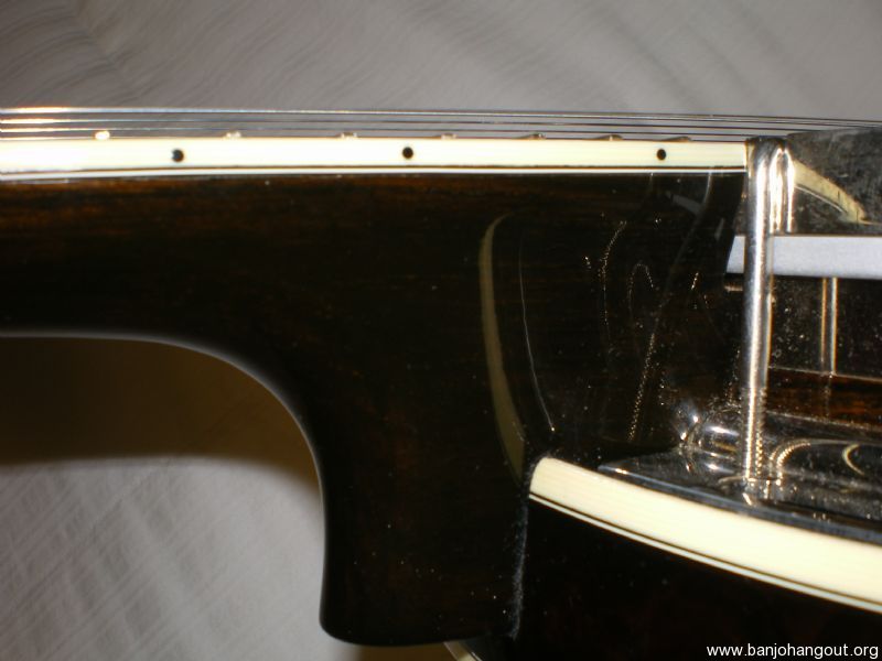This matching neck and resonator is a custom order built by Arthur Hatfield. Double cut peghead, rose wood fingerboard with Gibson Florentine Special inlay. The neck is walnut and the Cox resonator is burl walnut. The heel is cut for a ONE PIECE FLANGE. TUNERS ARE INCLUDED. Spikes at 7 and 9. Inside of the resonator is autographed by the late Bill Sullivan. Resonator has wall lugs and thumbscrews. The condition of both neck and resonator is excellent +. Minor to moderate wear to first position frets.