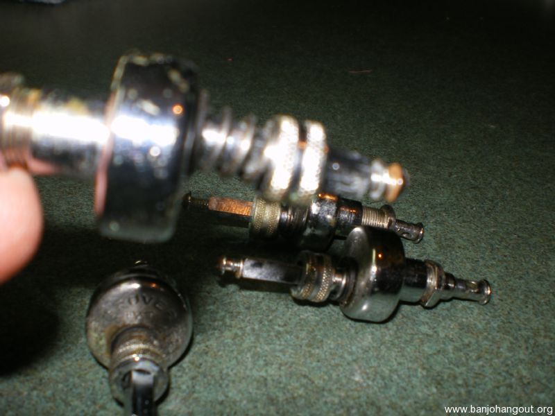 The buttons that were on them were modern and not appropriate for the tuners. Buyer can select buttons of choice that fit the restoration project he is working on. These would be the tuners for a Gibson style 4, 7, or 12 possibly.
