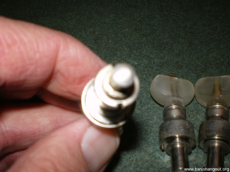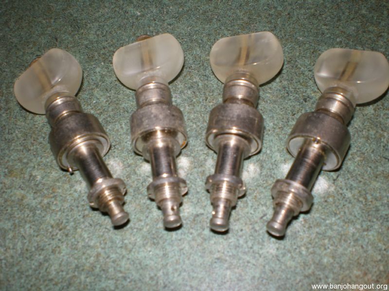 Set of four modern production tuners, with small 9/32 shaft. 9/32 peghead hole and shaft was a common pre-war specification. Has the notched tightening collar shown in second photo.