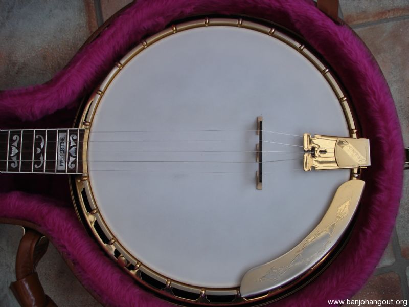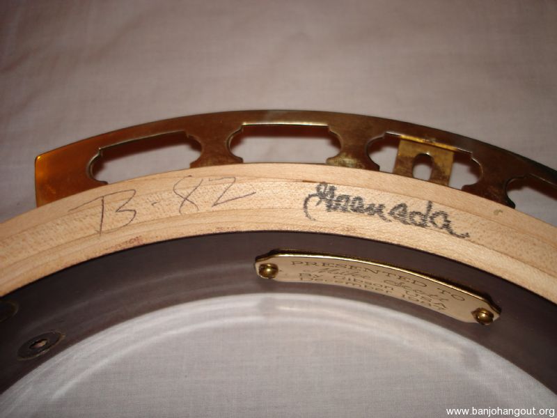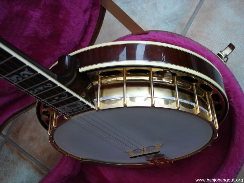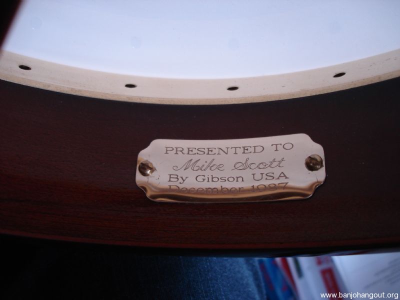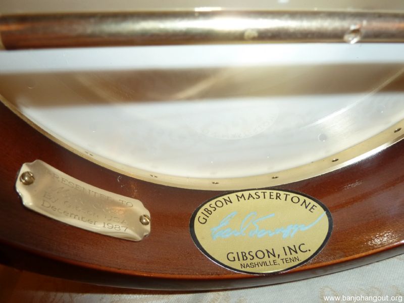 Granada 1987, I bought this Banjo from Mike Scott of Nashville. It is in good condition but has some wear to gold plating on armrest and tension hoop. The Banjo was given to Mike Scott in December 1987 by Gibson. Please email for any further information . The only thing that has changed since I bought the Banjo is the Gibson Label, It now has a label signed by Earl Scruggs which was supplied by Greg Rich, Steve Huber removed the original Label and would verify this.