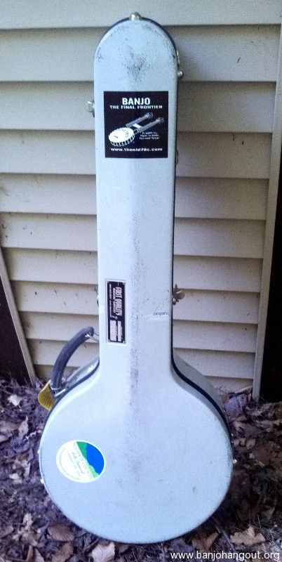 Calton case for sale. Light gray exterior with red interior. One case sticker from Madison County Arts. Usual scuff marks but no damage or problems. Will fit a 12 in. pot 5 string banjo.
