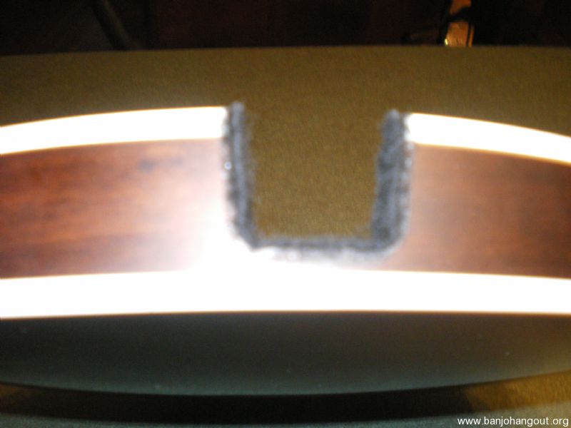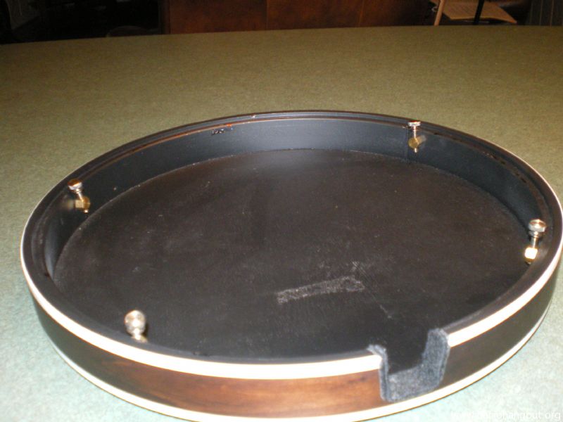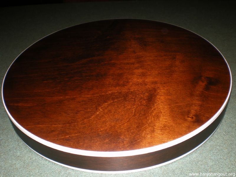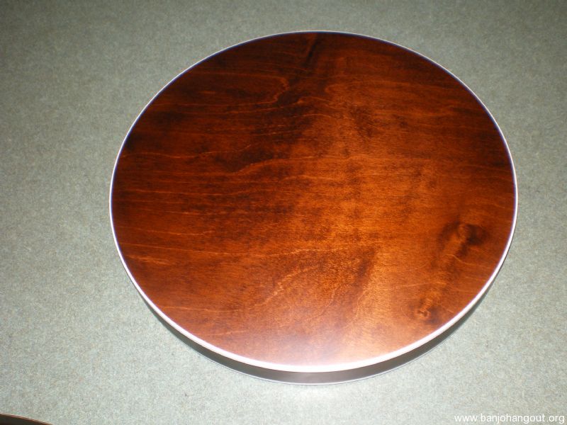 Deering Sierra resonator, stained maple, satin finish. No noticable scratches or blemishes on the outside of the resonator. Minor blemishes on the inside lip where the L-brackets rest. Felt replaced in the neck notch.