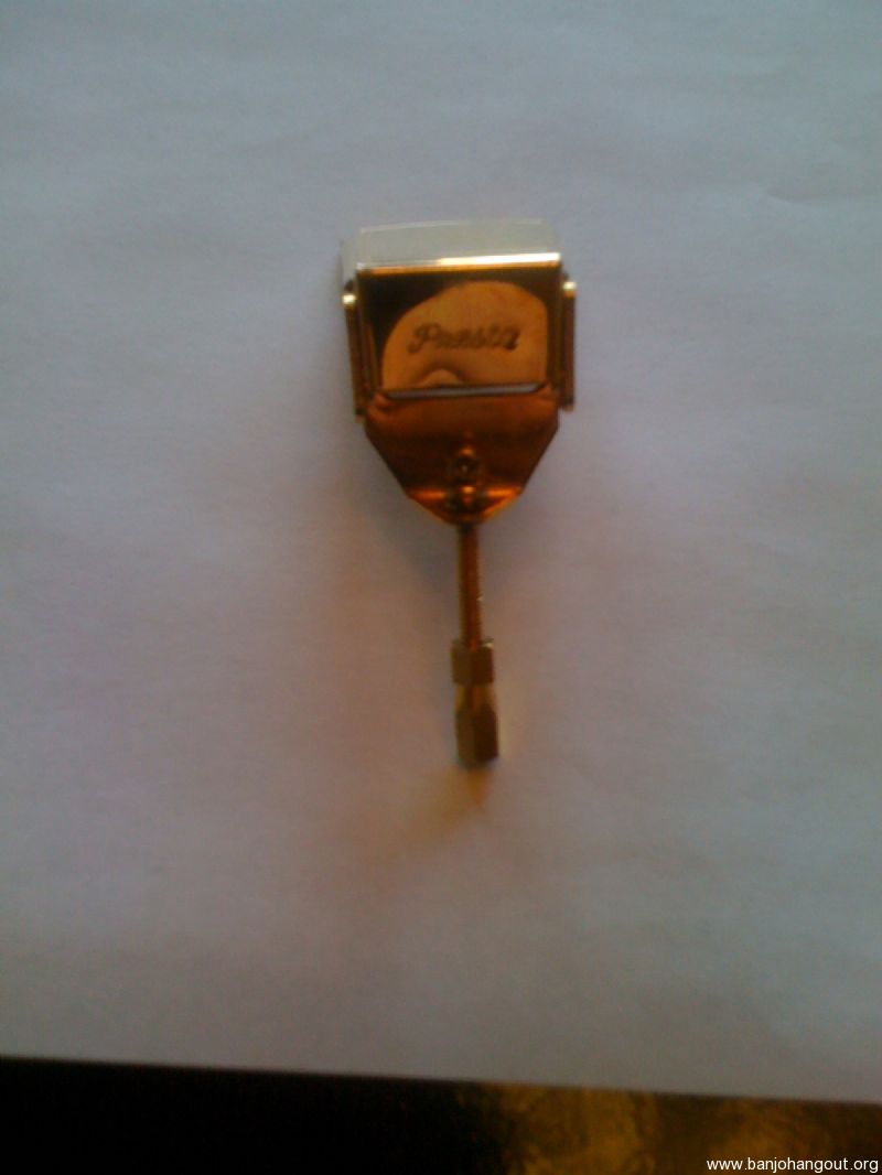 GOT TOO MUCH STUFF SO I'M PUTTING THIS GOLD PLATED PRESTO TAILPIECE UP FOR SALE. ITS IN GOOD CONDITION EXCEPT THE SCREW THAT ADJUSTS THE ANGLE IS A LITTLE WALLOWED OUT. I'M PUTTING SOME OTHER ITEMS ALSO SO IF YOU BUY MORE THAN ONE I WILL COMBINE SHIPPING AND ALSO IF YOU HAVE A ELLIOT OR KAT EZYE OR SIMILAR CAPO I WOULD DO SOME TRADING.