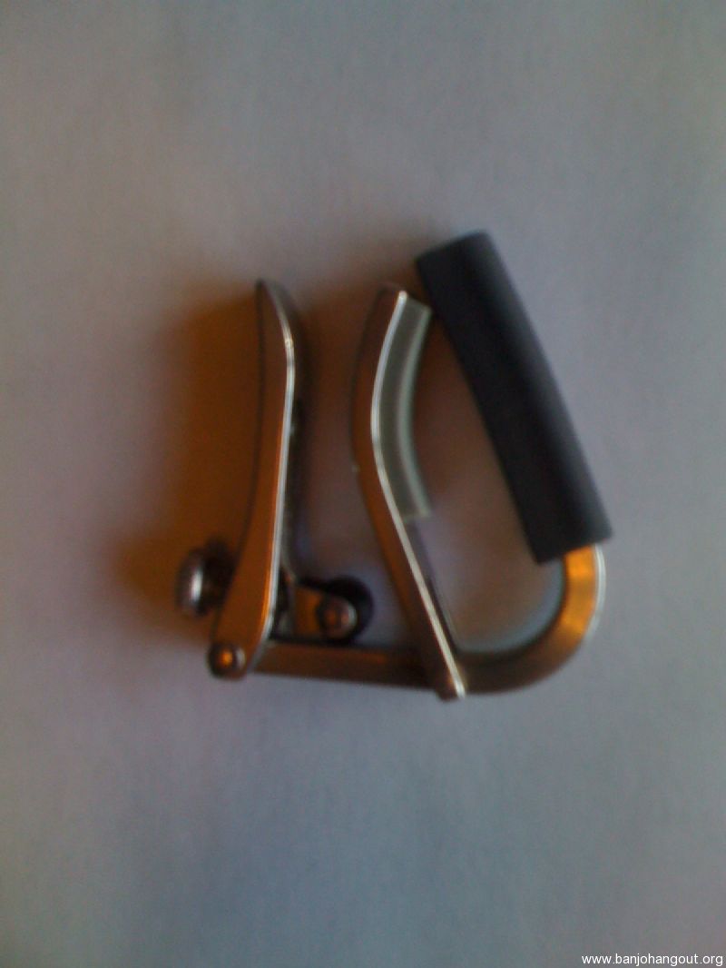 I BOUGHT THE CAPO WHEN I HAD A RADIUSED NECK BANJO AND IT IS LIKE NEW. WILL COMBINE SHIPPING IF YOU PURCHASE ANOTHER OF MY ITEMS I AM POSTING. ALSO I WOULD BE INTERESTED IN A ELLIOT OR KATZ EYES OR SIMILAR BANJO CAPO FOR TRADE. NEW LOWER PRICE!!!