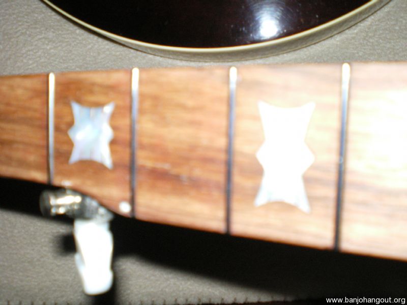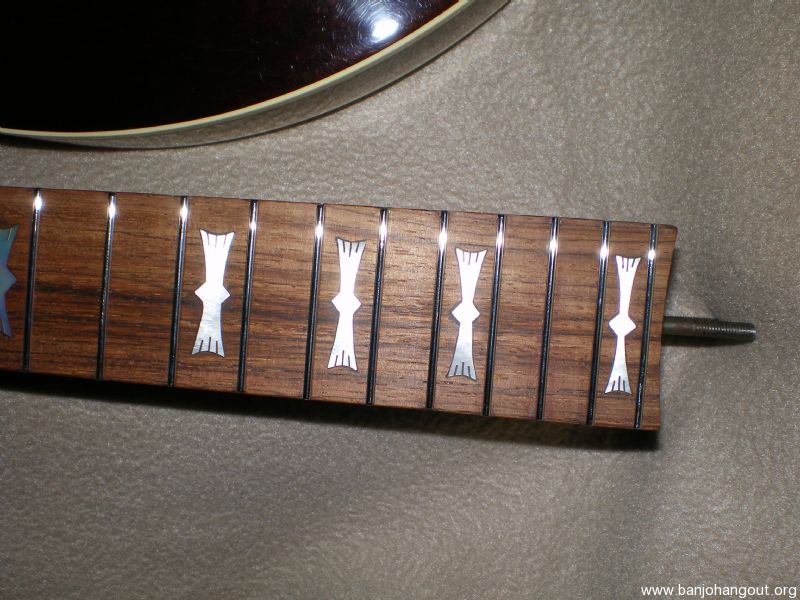 1990 Gibson RB-1 neck and resonator. The neck has been upgraded with new stainless steel frets and style 7 bowtie inlays, by Clifford Seales, who does the pearl cutting and inlay for several builders on the Hangout.