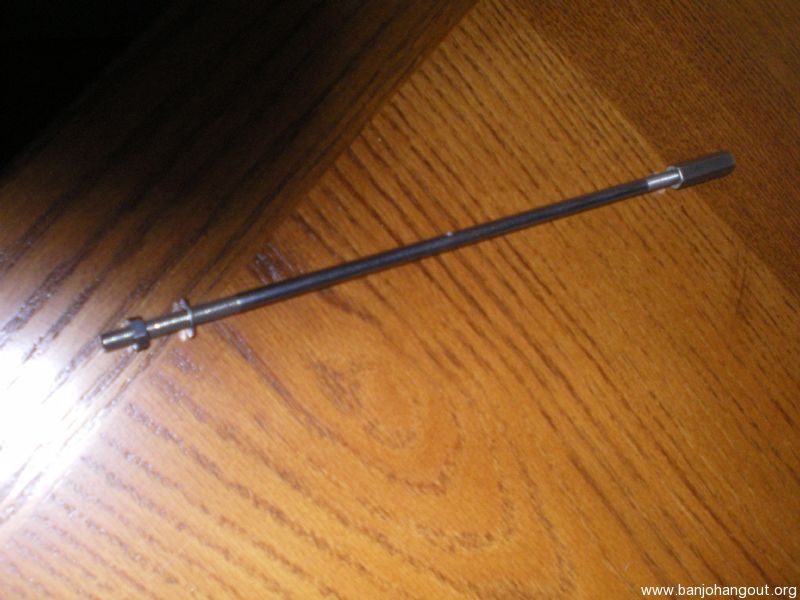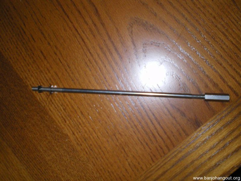 Small diameter. lower coordinator rod with long nut. Has one washer and the rear standard nut. Nickel plating in nice condition.