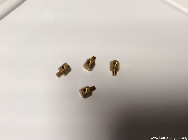 "Replacement Resonater Lug Screws - To adapt banjos with metric or odd-sized thread count to10/32 Raejusters. Requires 1/8" screw, (requires 7/64" to 3/32" hole). Set of four"