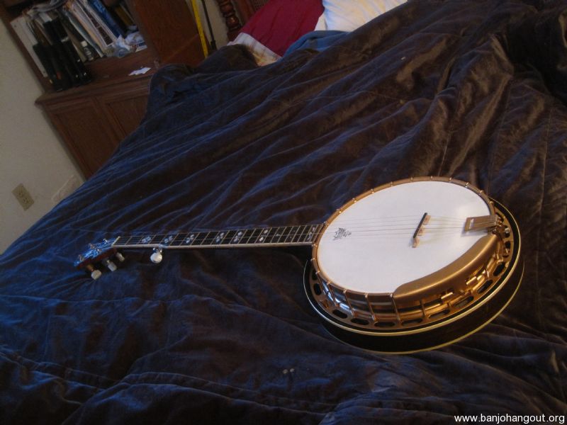 I will either sell this banjo at full price or trade it for a Gold Star flathead or a quality Masterclone banjo of similar value. Any questions will be promptly answered. I personally guarantee satisfaction on this instrument. It's got great tone all around!