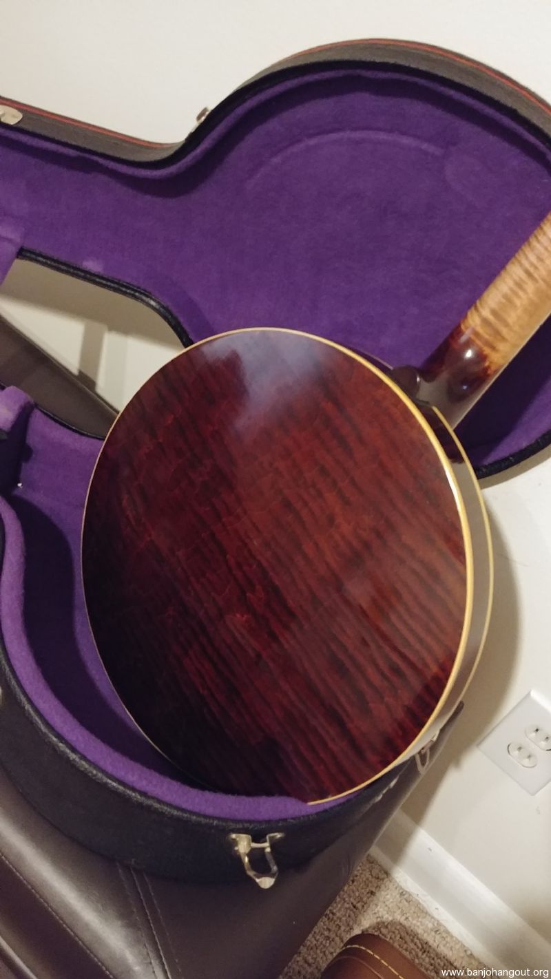 Yates Shelby model, from 2009. Very high grade curly maple in the neck and resonator. No-hole Yates flathead tone ring, which in my