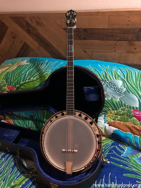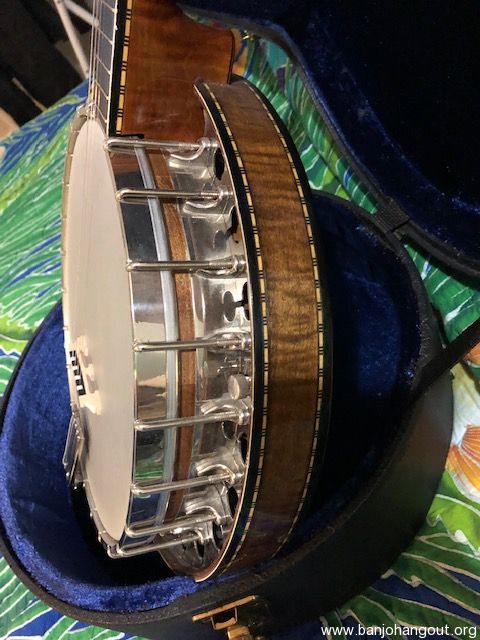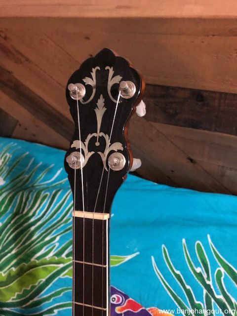 Really nice Plectrum for sale. I believe this is a Wildwood and was made in Arcata, CA. Great sound. FULL DISCLOSURE: There are no maker’s marks or tags on the pot, neck or headstock. I purchased it on the representation by the seller, who I knew, to be a Wildwood. It is a very nice sounding banjo and has all the aesthetic and sound earmarks of a Wildwood.