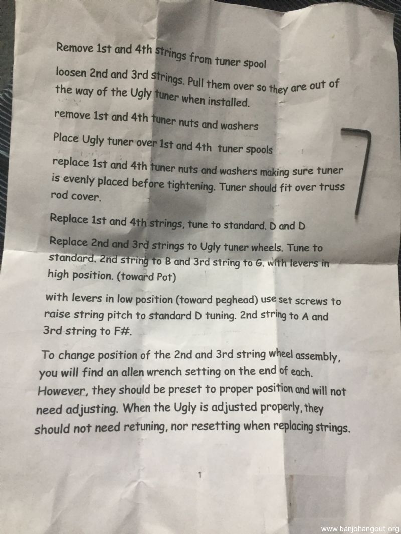 As for the tuners, the knurled finger stops were too sharp, so I put a dab of JB-Steel Stik on both. This does not affect the performance of the tuners in any way. Banjo not included.