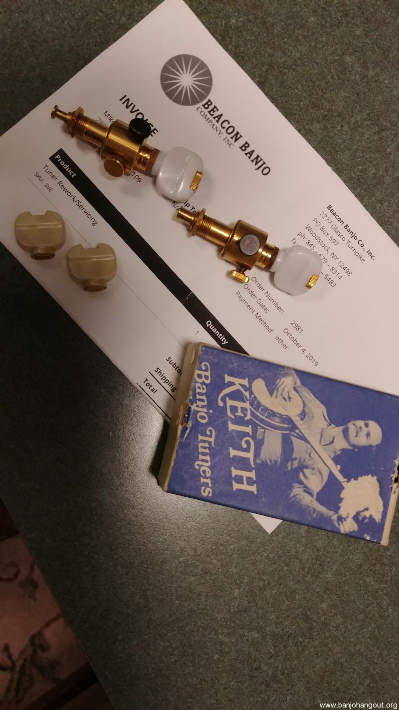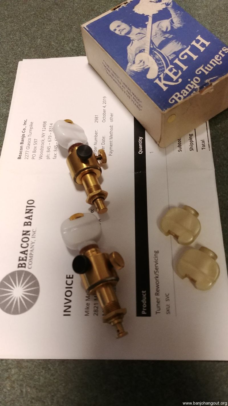 Vintage set of gold Keith Tuners, strings 2 and 3, in excellent condition. As you can see on the invoice, dated Oct. 4, 2019, they