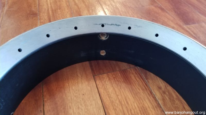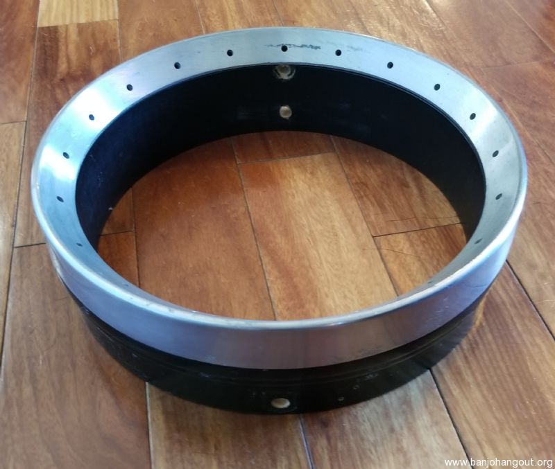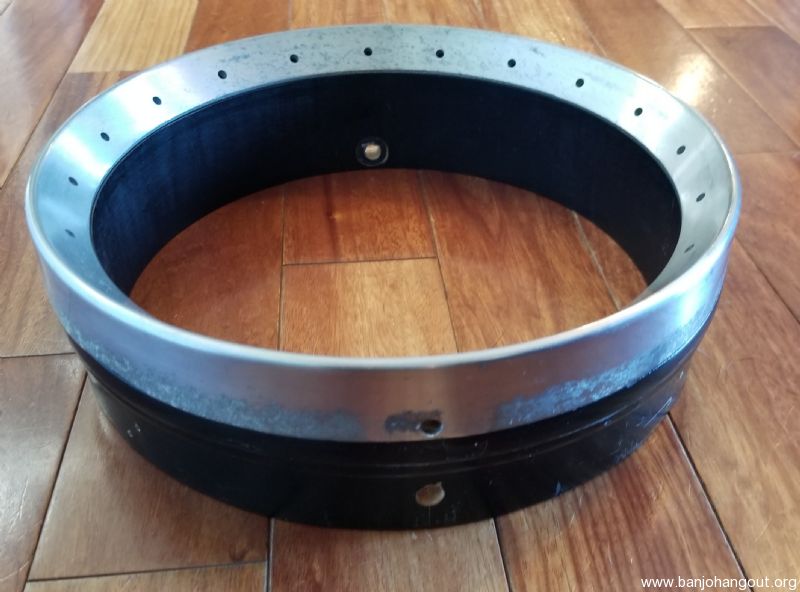 Epiphone rim and tone ring. Drilled dual coordinator rods, rim is designed for one piece flange. Ring is not brass