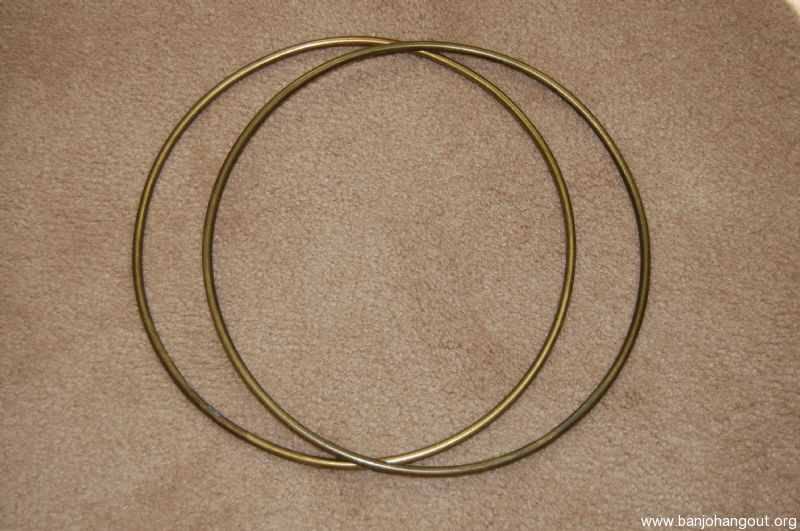 For sale here are two 11 inch brass hoop style tone rings from pw and late 40's Gibson Banjo.....one of these was purchased from Mr. Bryant for 40 bucks years ag and I am offering these two for 52 .....they are what they are supposed to be......thanks good luck.......434 209 7798