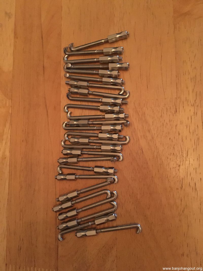 Not sure of the pedigree of these, but no less they are a high quality, modern set of nickel plated hooks and nuts. There’s light scratching on some but not all of them.