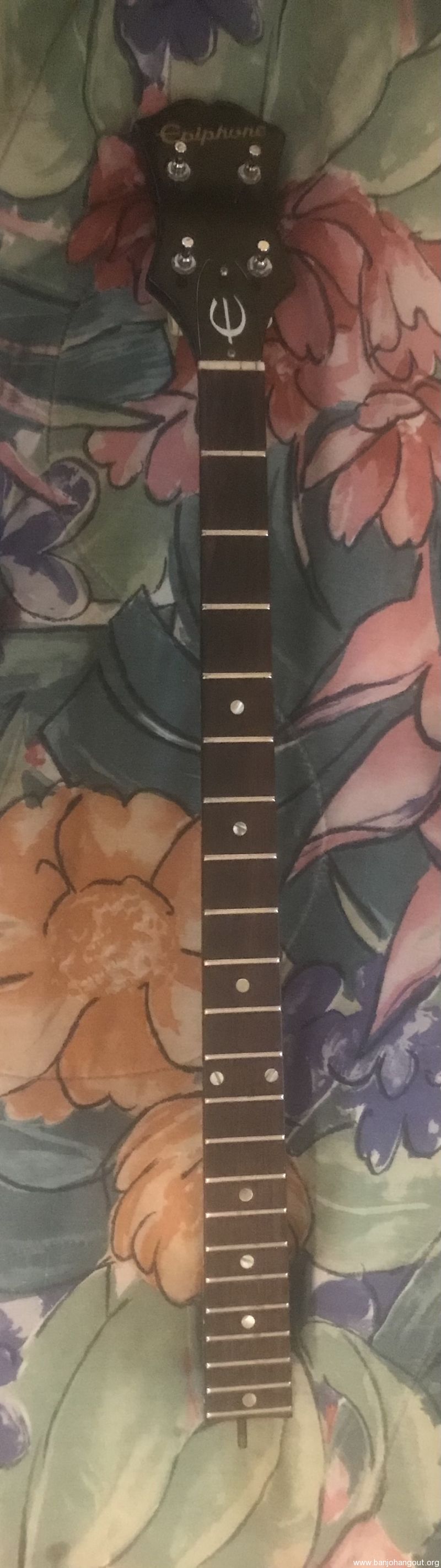 The Epiphone neck is in good to very good condition, no heel or headstock breaks, and would be a great candidate for a plectrum-to-five-string conversion neck.