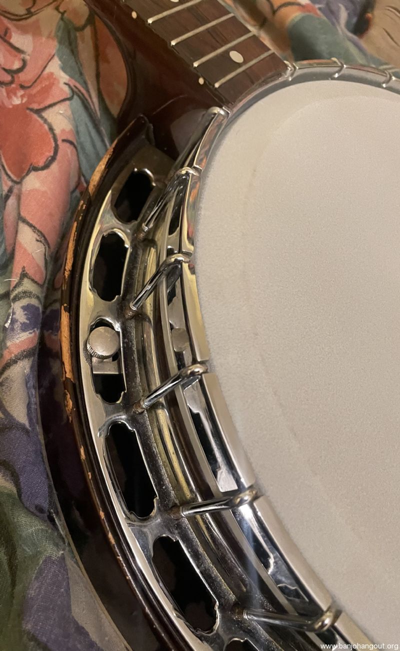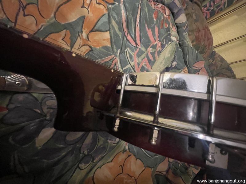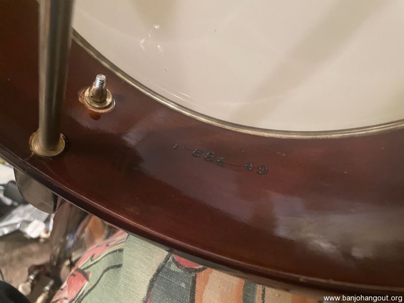 However, the rim number corresponds to a 1954 RB-100 with brass hoop and dots in the fingerboard.