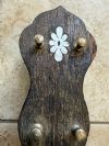 Custom peghead with treefrog inlay-rosewood neck with mother of pearl side dots, burl walnut resonator. Ebony fretboard with flying eagle (squished frog) inlay pattern, radius fretboard. Inlaid trillium on heel. Engraved nickle hardware 2 piece flange, Pass thin skirt rim, with Tenessee 20 flathead etc