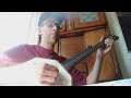 Gold Tone cc100R, Tackhead Fretless , Gourd fretless (x2), cookie tin banjo (x2), Appalachian mountain banjo, Cigarbox guitar, acoustic guitar.