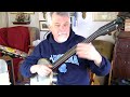 5-string. Bart Reiter Special, Jason Mogi fretless, Harmony, fretless Frankenbanjo, Bart Reiter Special, Charles Waldman Chromatic with nylgut strings.