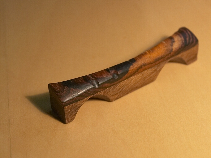 shows the notches behind the 4th and 5th strings to control the width of the top wear the string rest.