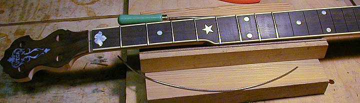 It's coming along! here is the fingerboard attached and fretted, and the inlay.
