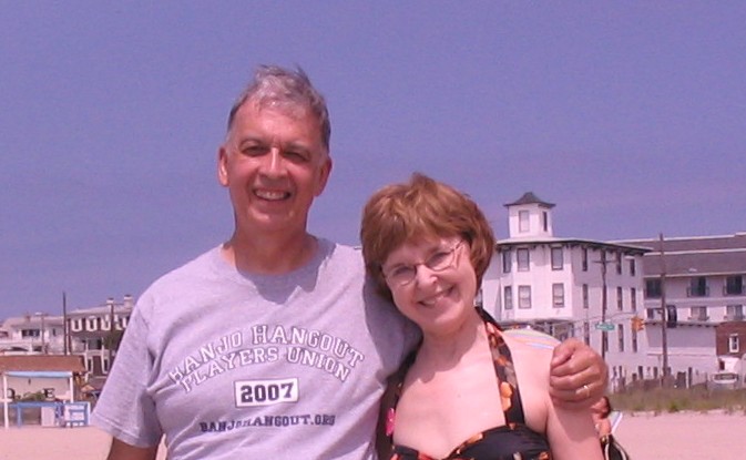 Paul and the Fair Sandra on the beach at Cape May, NJ. Too much salt air to bring along a banjo, so I just listened to Tom Adams on the iPod.