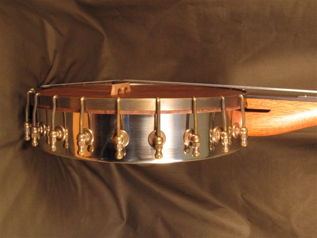 Brooks sent me these pics this morning too, and I've been drooling over them all day. I thought I'd go with the L-shoes on mine, but I think I've changed my mind having seen your banjo! The proportions are just perfect with those 20 globe shoes on the 11.5" pot. "Full but not crowded" as I told Brooks. Can't wait to hear you describe and/or post the way it sounds! beautiful.
