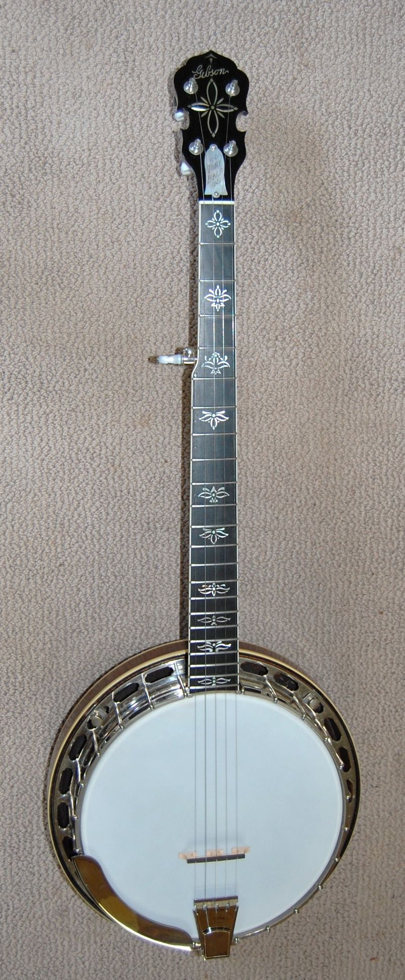 Thanks so much Janice. I am stoked to have it. It is the only neck like it so far. Period correct stencil transferred to mother of pearl on ebony. Yehaaaaaaaawwwwwwww! Be well.