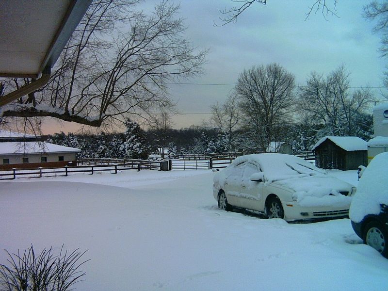 Looking out to the barn
