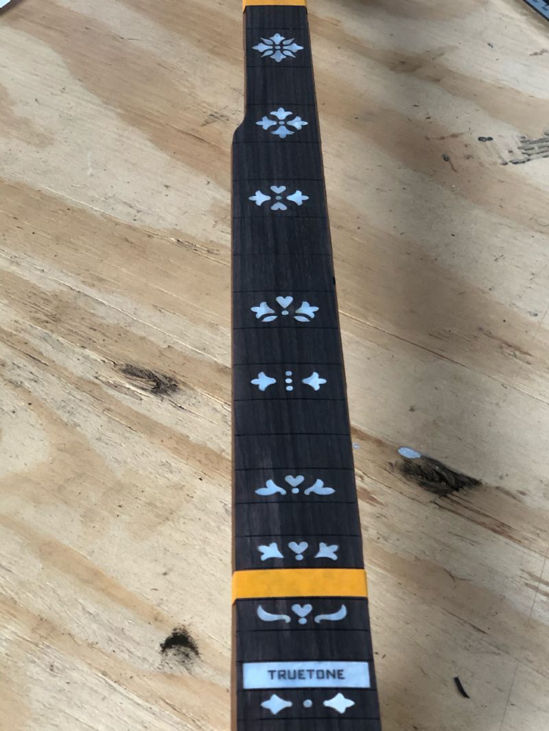 Be the first to comment on “Rosewood neck with Huber "Hearts and petals" inlay pattern”