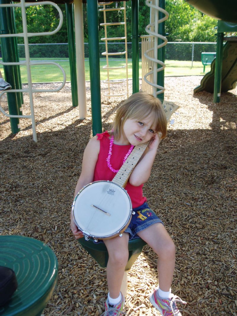 Debbielee, She is a darling! It looks like she is cuddling her small banjo! Probably wants to be just like mom when she grows up! What can you tell us about her banjo? You know, we aught to have a sticky about how to introduce kids to the banjo so folks can share their experiences. I have a little guy who is 2-odd and hope to get him interested. I have a banged-up old Epiphone - I open the case and hand him some picks whenever I plink so he can strum along. I have been wanting to get something he can put on his lap. One thought I had was to just strip the resonator off of the Epiphone and choke up to the forth fret... I still think that may be pretty heavy for him. Another idea I had was a traveling banjo - maybe a Tranjo - so I could borrow it when I travel for my work (frequent). Debbielee, do you drag your little Sunshine to gigs? How does she hold up? Does she listen to BG/OT? Yep, we aught to have something about kids here in BH land. How to instroduce, how to teach, how to keep interested, what books are good... yadda, yadda, yadda. What say? Rich