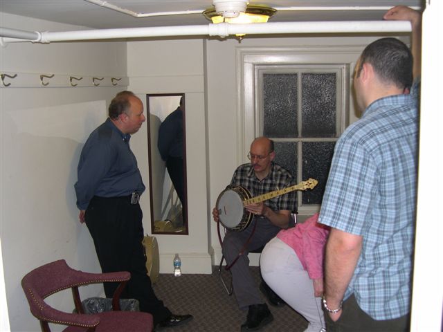Bob checking out an original RB 11 banjo with Jim Mills and Jim Adams backstage after a Ricky Skaggs concert