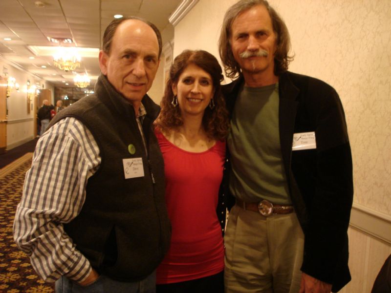 Hanging out with 4-string banjoists Dave Marty (L) from CA, and Tom Stuip (R) from The Netherlands at the 2008 Spring Fling in MA.