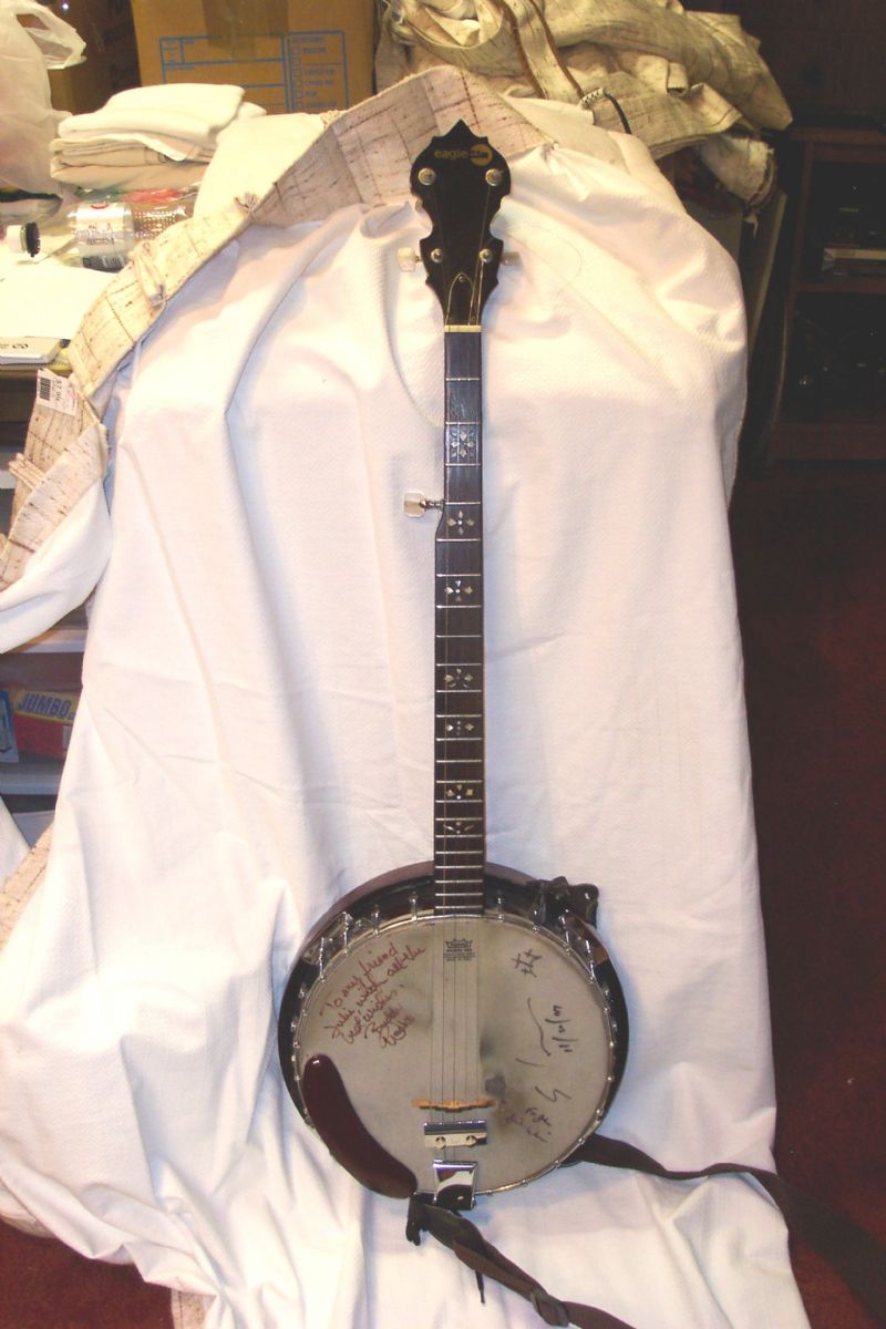 Betsy the Eagle Banjo's Frets and Head. Looking for more information the Manfacturer, Eagle Banjos. taken with Kodak LS445 EasyShare Zoom Digital Camera at Yakima Washington
