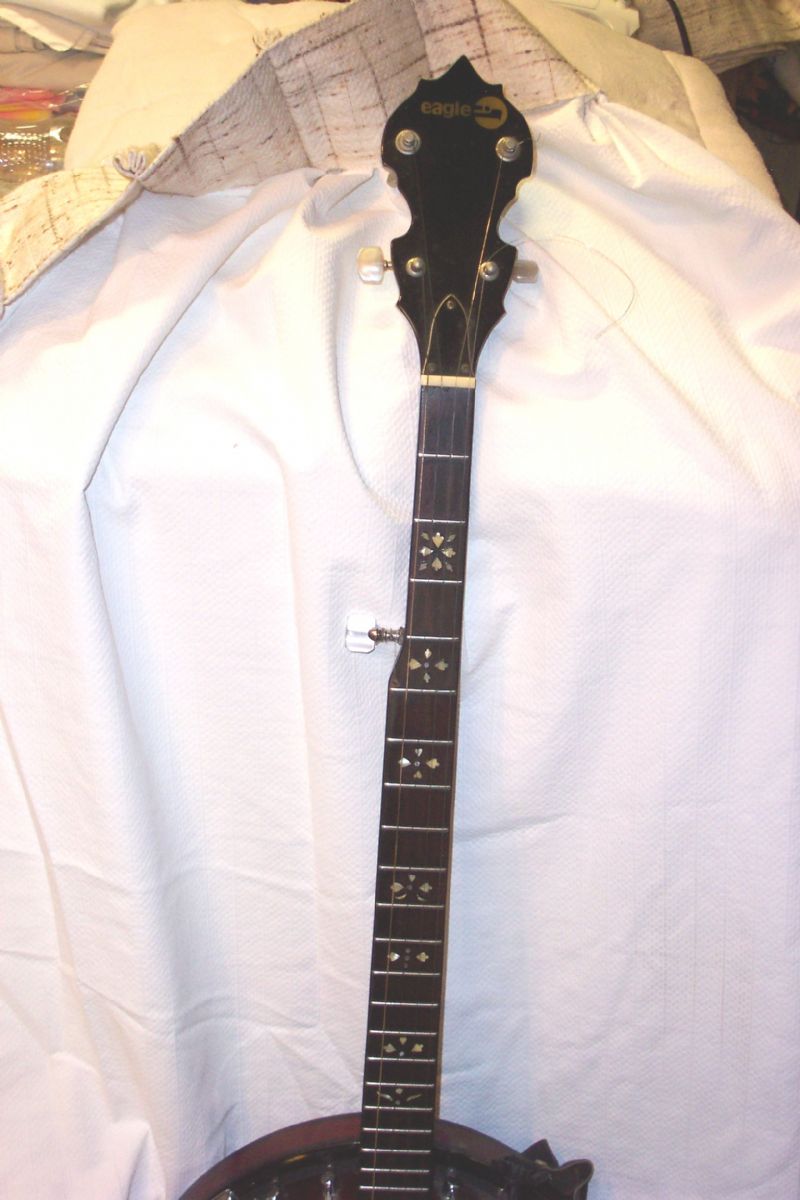 Betsy the Eagle Banjo's Frets and Head. Looking for more information the Manfacturer, Eagle Banjos. taken with Kodak LS445 EasyShare Zoom Digital Camera at Yakima Washington
