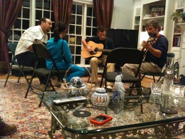 David, Lili, Tyler and Frank getting serious. A jam session organized by David Thom and held November 28, 2009 in Greenville, SC. Photo courtesy of David Thom