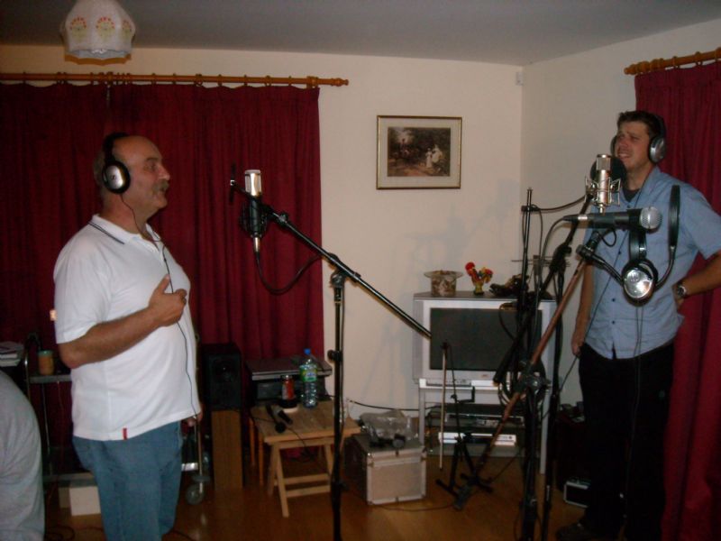 1 comment on “The guys laying down the vocals.”