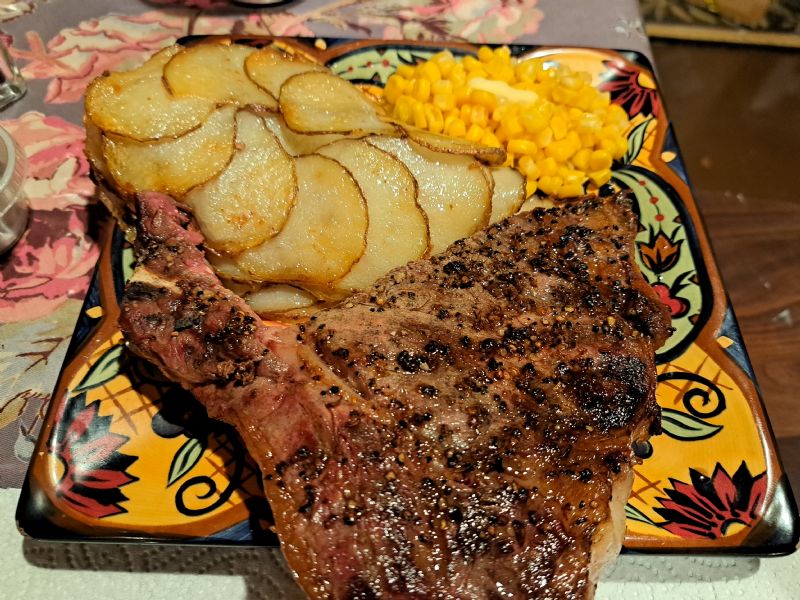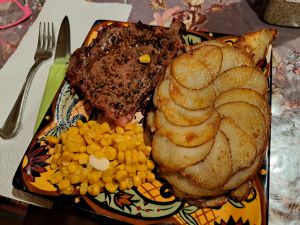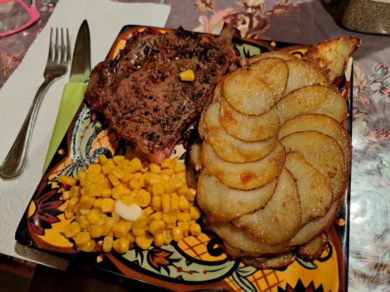 Originally posted by STUDRib steak, potatoes Anna with garlic and a full stick of butter, a can of corn.