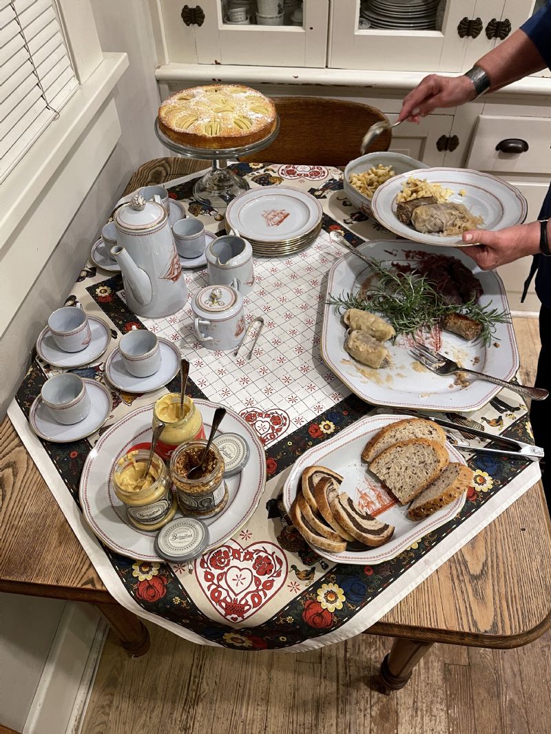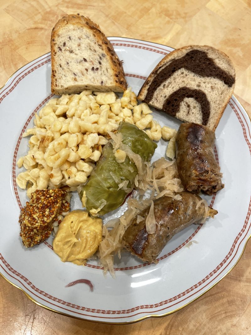 Brad, besides staring at the beautiful wood grain of that table , I also had to zoom in on that Thomy tube and see that is mustard. Never heard of it. I know you are into mustards and when I googled Thomy, it came up on Amazon with all 5 star reviews. Why am I not surprised??? Delish looking German meal!!! What’s in the bowl???