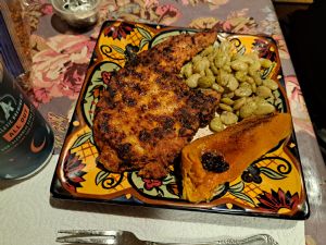 Mystery Meal? Baked chicken breast and fried rabbit with Lima beans?