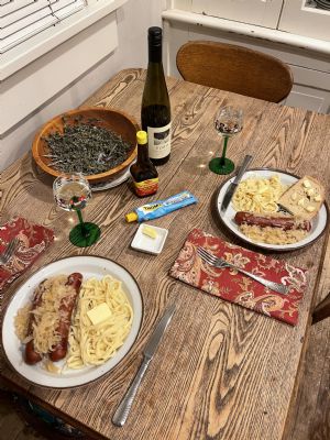 Originally posted by slammerBrad, besides staring at the beautiful wood grain of that table , I also had to zoom in on that Thomy tube and see that is mustard. Never heard of it. I know you are into mustards and when I googled Thomy, it came up on Amazon with all 5 star reviews. Why am I not surprised??? Delish looking German meal!!! What’s in the bowl???
