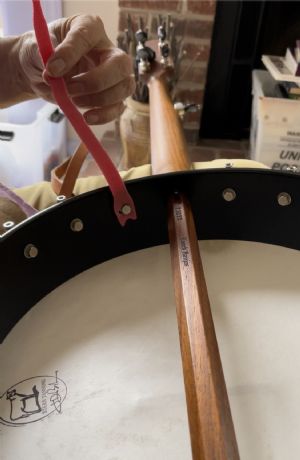 One problem (the only problem!) I’ve had with my Banjo Bolsters is that my belly pushes the bolster against the head, dampening it more than I want and sort of defeating the purpose of this wonderful invention. But after weeks of musing and several trips to hardware stores, I have found the answer.