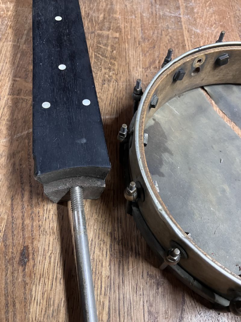 A little context. THE professional’s choice when SSS got into banjos were Troy NY and Clarke banjos. These had the neck bolted to the rim with no dowel.