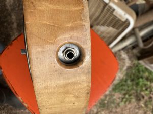 A friend gave me this some time ago. It looks like a home-job, but I feel like I remember seeing something similar here on the hangout some years ago. It is solid maple and measures 11 1/4" diameter x 2 1/4" deep.