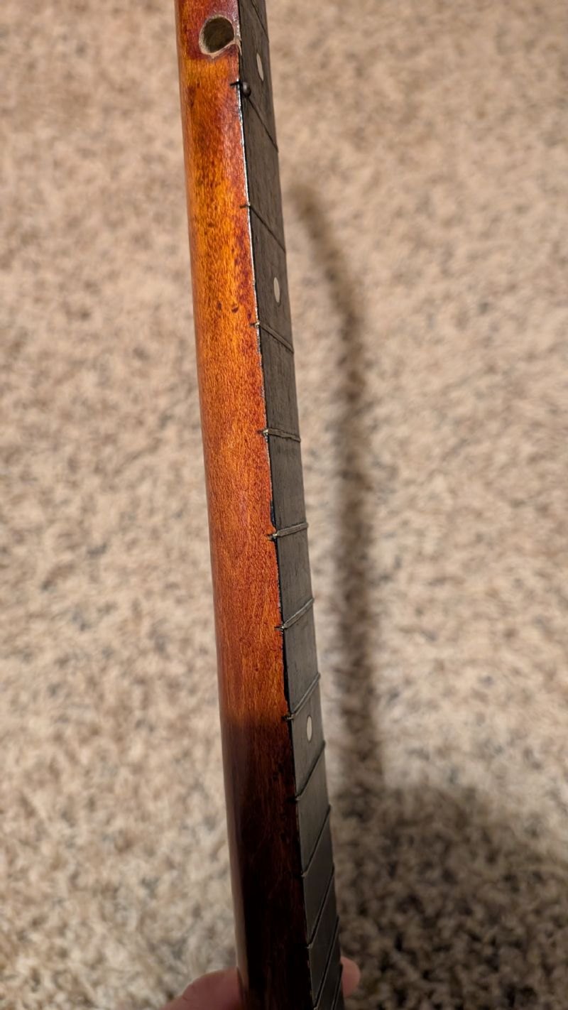 Anyway, see pictures for the frets. Up towards the nut they're basically flush with the fretboard. I'm considering just ripping them out, filling the slots, and converting it to a fretless/flushfret. Never done that before though so figured I'd ask the BHO Braintrust. Thoughts?