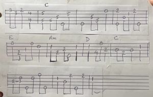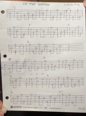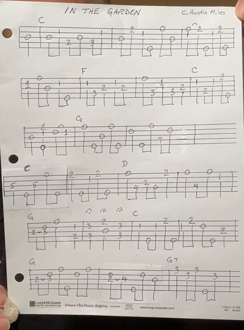 Written in 1912 by C. Austin Miles, an intermediate level banjo arrangement.