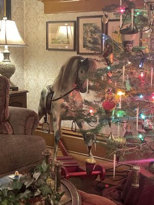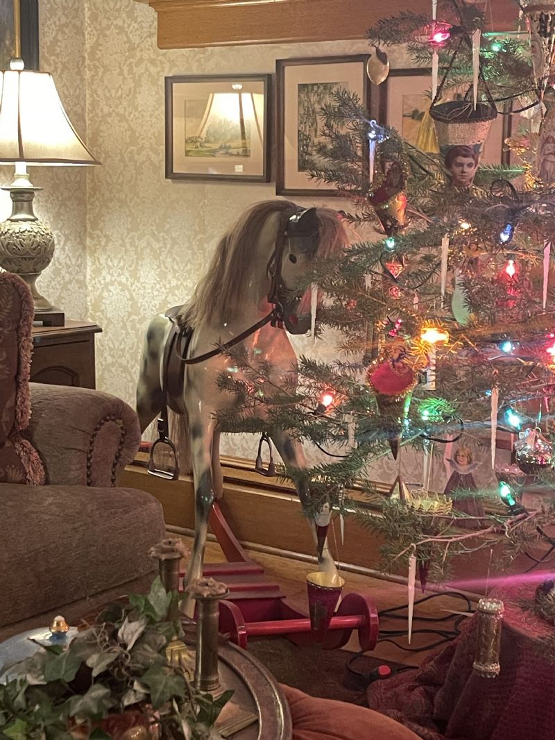Look what joined us this year for Christmas. Our daughters English hobby horse. The poor creature had been ignored for decades in our 3rd floor. Yet in the Early 1980s the horse was worshipped by every kid and adult when it was out. We have/had so many photos of our girls riding away on it. Awww, memories! Brad